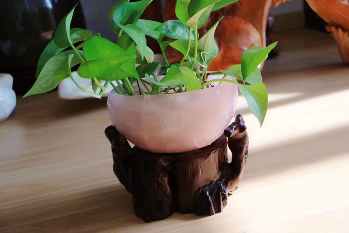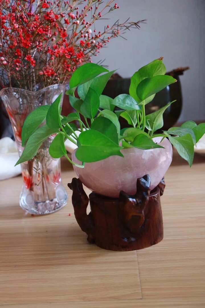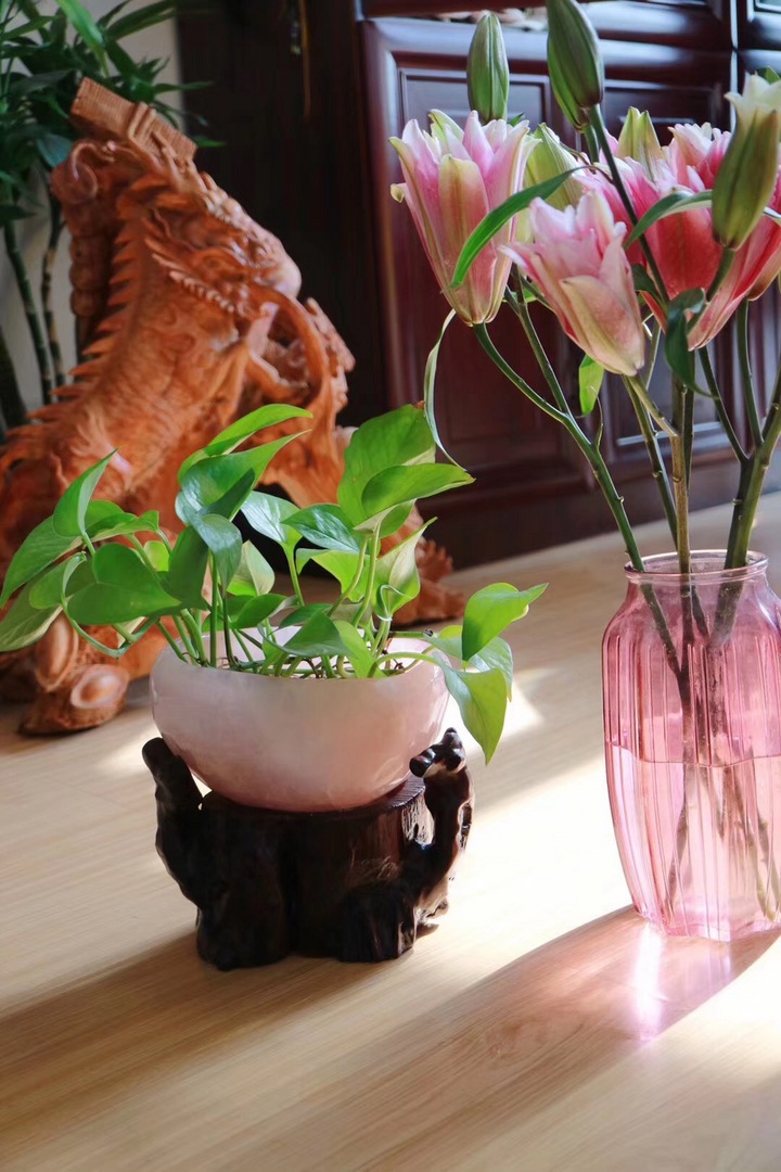 大自然的灵与美,这冰润可人的粉晶聚宝盆温柔极了,时常摸一摸也是一大乐事,有助于为空间塑造温馨甜蜜充满爱的磁场,让身处其中的主人更加开心喜悦,爱花花草草的美人可种些绿萝散发勃勃生机,放在财位聚财效果最佳!