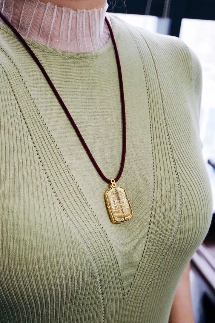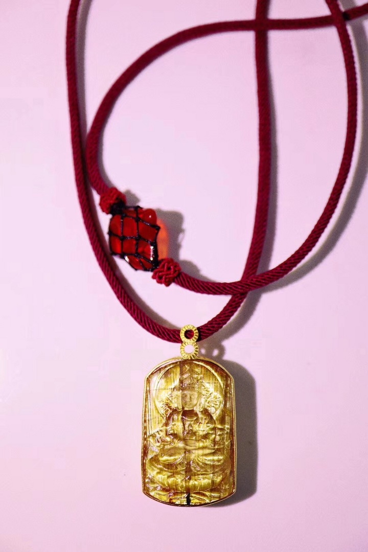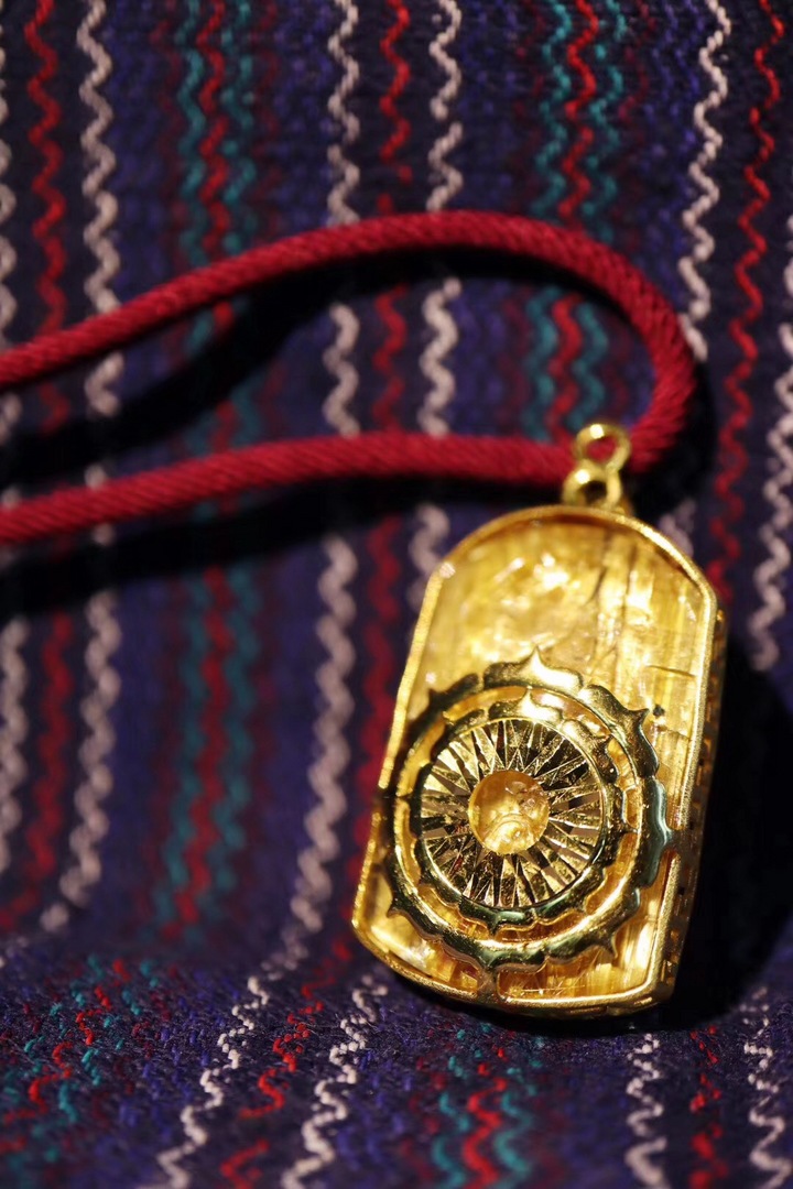 一这款收藏钛级晶佛牌,以法为轮底,万字符为边,无限符为扣。绳链以上一颗欧火泊为心,接触椎脊,通主脉。是甚完美!照拍时,莲座花金光闪闪,光佛普照,心吾欢喜。