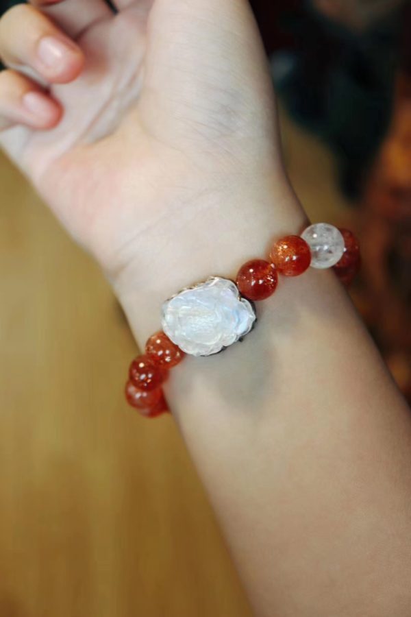 Get一下太阳石滴美✨太阳石加月光石花花~可以消除一切不洁之物,辟邪、折煞 令含有负面能量的东西变为正能量,所以犯太岁的人佩戴太阳石都可化煞,在八卦的卦象中,代表太正极的乾,带来喜财大吉哦~