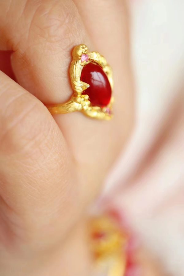 如今天这一枚火欧泊戒指,“自然”而然的灵感。幽暗的火在其中闪光,积聚了世间光明的能量,就像太阳一般热烈温暖。有些美,是值得留下的。就像这些自然之物,戴着身上,时时让我们与地球大自然链接着,实则,你我皆是这自然中的一员。