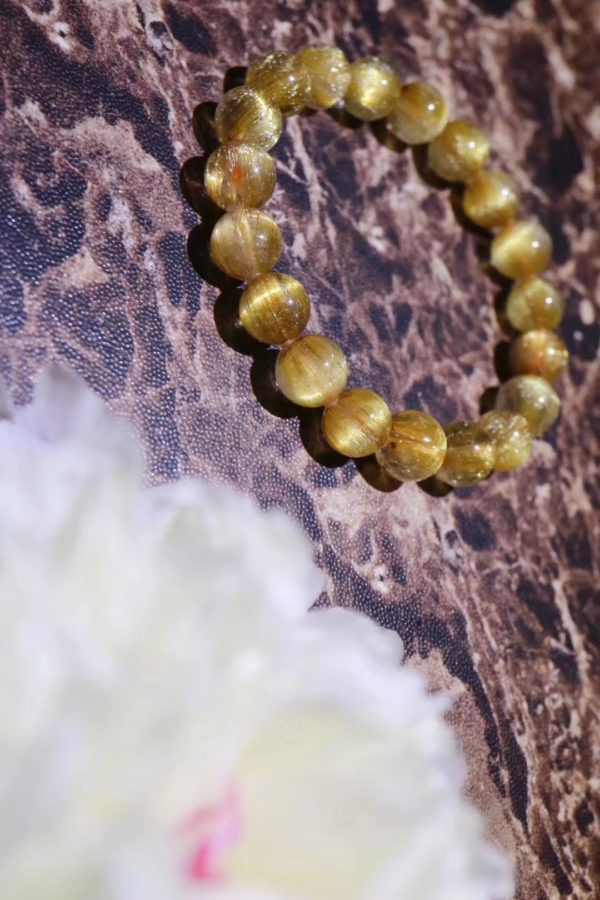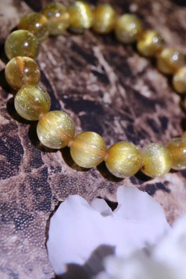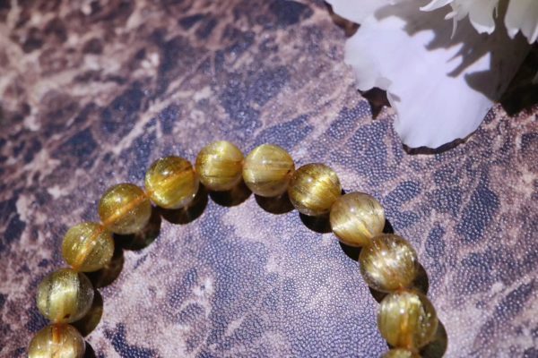 钛晶由于内含的发丝状物粗而直,所以反光更强更美,钛晶内部发丝要越密越好,同时发丝要顺而不紊乱,若发丝密而顺呈板块状的话,就是极少有的板钛了,或者发丝密而顺呈闪闪发光的猫眼状的就是极少有的猫眼了。