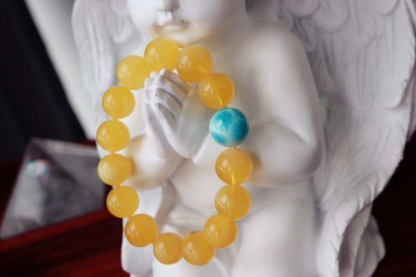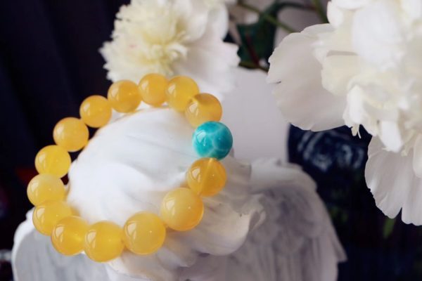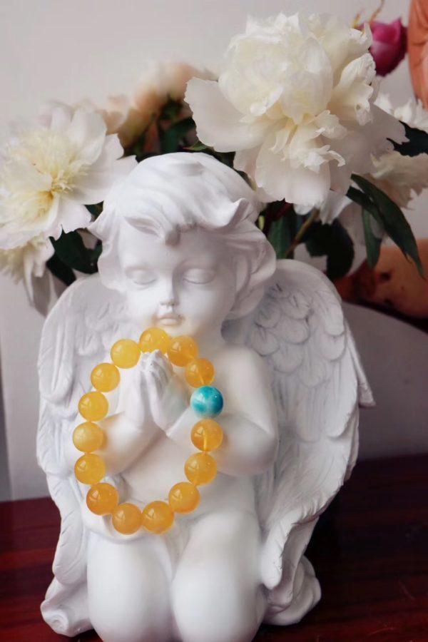 蜜蜡搭配海纹石,阴阳协调,圆融自在。蜜蜡会随着佩戴发生变化,像极了陪伴的样子。