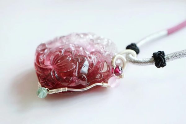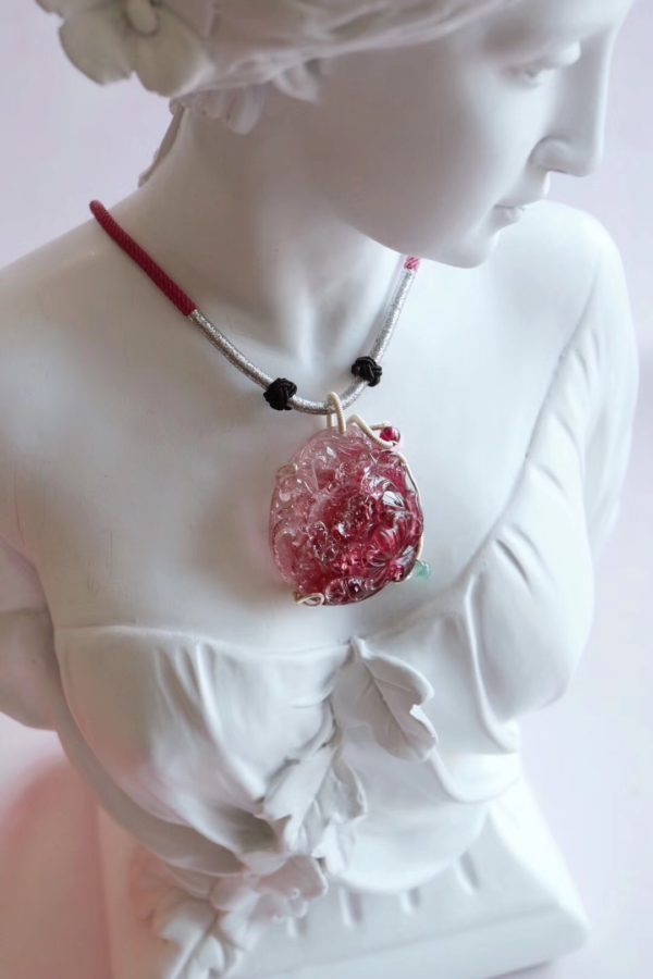 一枚俏色巧雕的大碧玺花花,双色巧雕,立体饱满,心养滋轮,颜色妖艳的逆天了。真不愧是“唯有牡丹真国色,花开时节动京城" 的花中之王,牡丹花有富贵吉祥的寓意,更是爱情的象征。