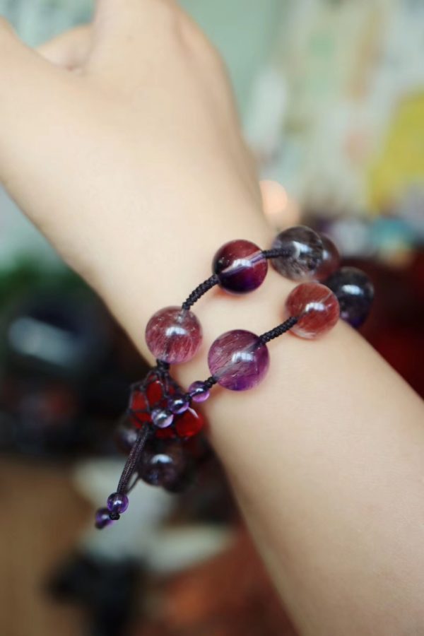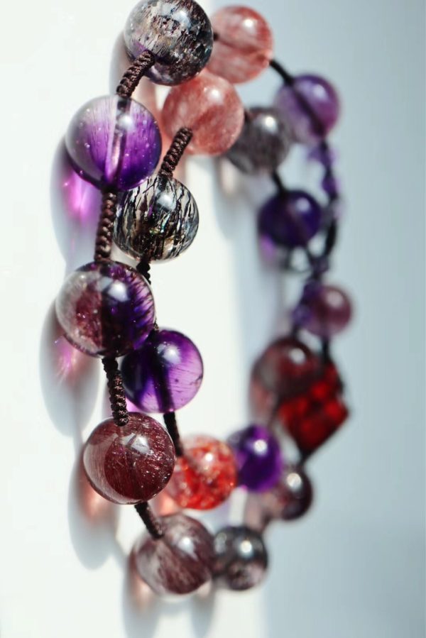 超级七水晶如果非要说颜色的话,那晶体自然是颜色越紫越好,而发丝则是颜色越偏红越好,黑色沉淀越少越好,云母片越多越好。