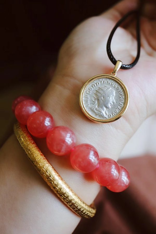 电影《加勒比海盗》中就有这么个细节:女主伊丽莎白和情人威廉从小就佩戴在脖子上的吊坠就是阿兹特克金币。古钱除了象征着财富,自古以来还常被作为避邪的法器。这一款,为古罗马皇帝戈尔迪安三世银币,背面是胜利女神,特用18k金包边,作为辟邪护身,他很赞。