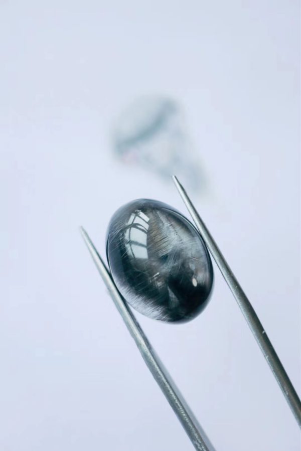 黑银钛产量稀少,品相好的更是极少。好的黑银钛发丝颜色为黑色,纯正,光泽度好,每颗珠子都带有银色猫眼,随着角度变换便可见到。晶体干净。高贵内敛。