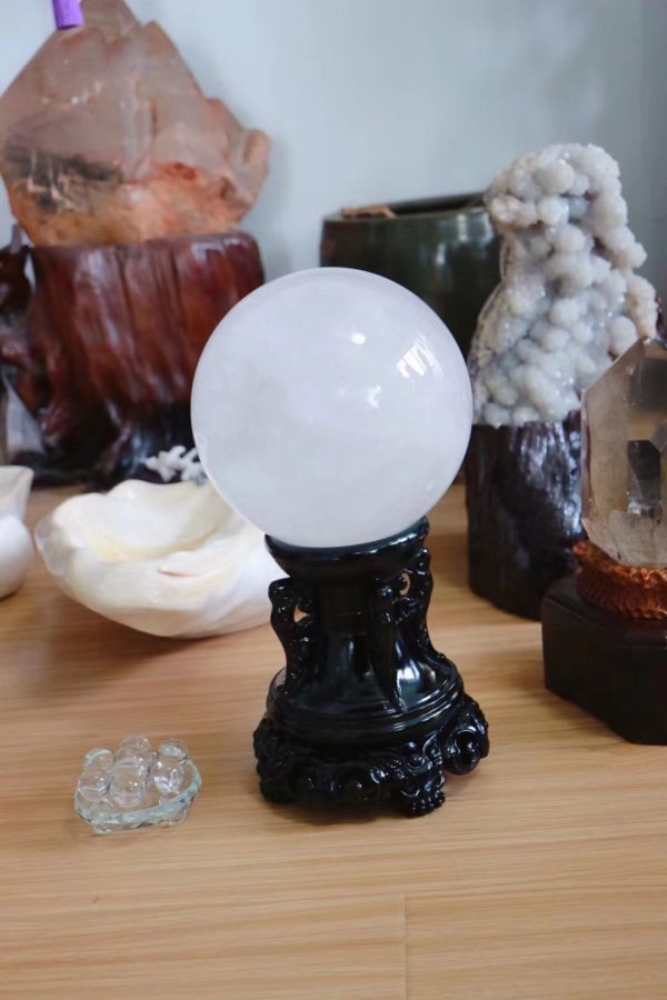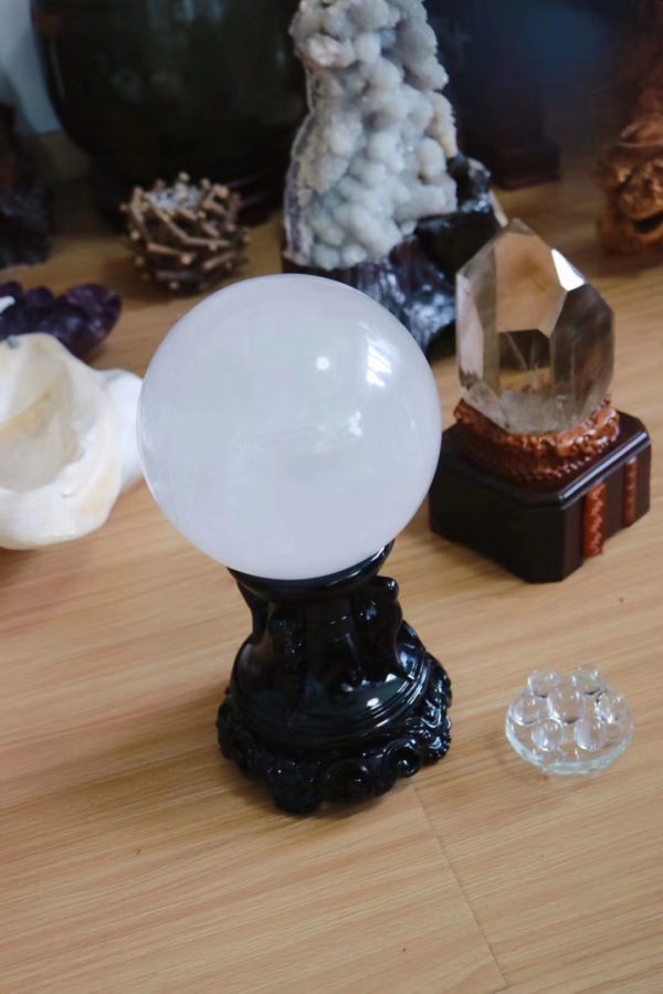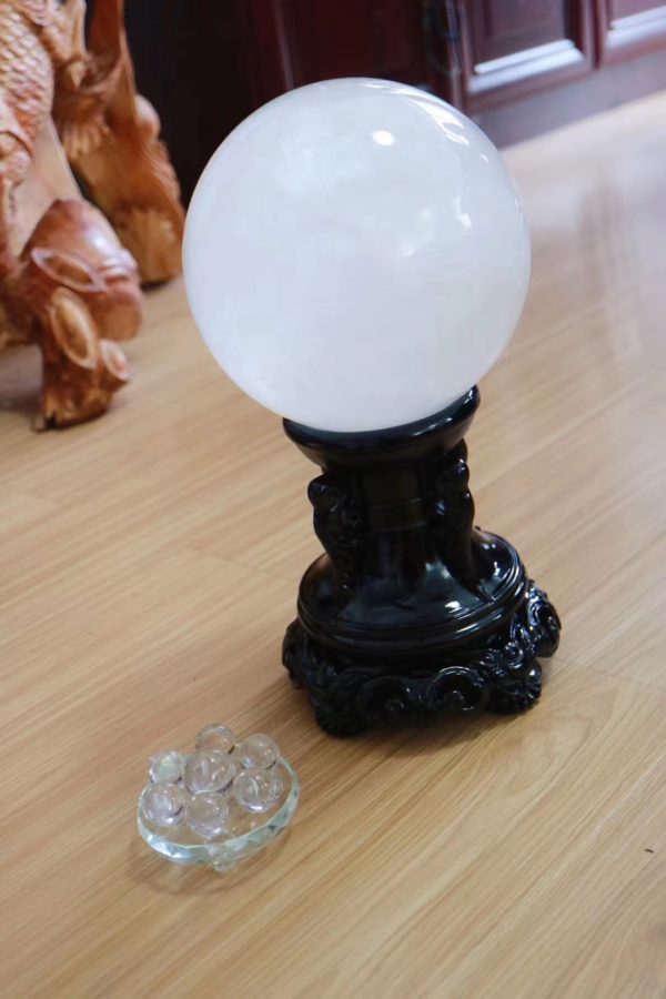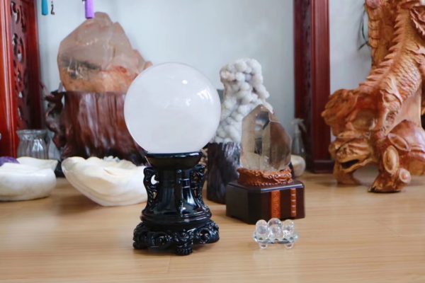 被誉为“水晶之王”的白水晶球,人们喜称:有球必应。而圆圆满满,又具超强能量的白水晶球,很自然成为圣品、供品。白水晶球是佛教七宝之一,又称为“摩尼宝珠”。白水晶在整个水晶的族群来说,分布最广,数量最多,运用最广。是对于避邪、供佛、占卜、练气、镇宅、挡刹是非常出色的,因为它有强大的正气作用和神佛灵气护甲作用,所以清除消极情绪、负能量、霉气、煞气是特别的有功效。
