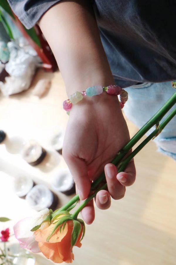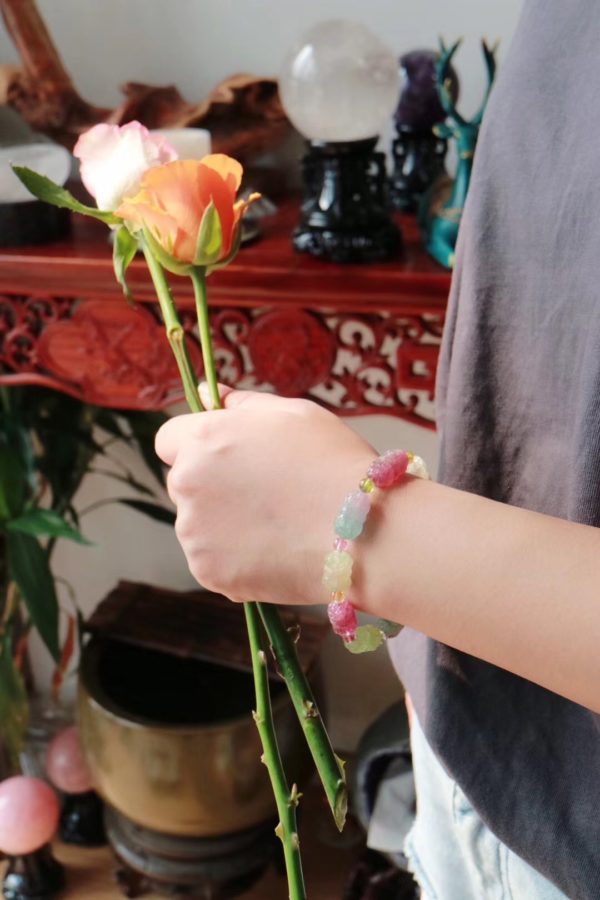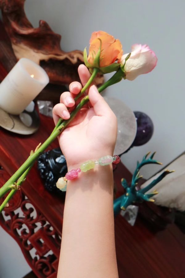 佩戴碧玺双生莲手链有什么寓意?双生莲,一双蒂花,以象男女好合,夫妻恩爱。喜联常有“比翼鸟永栖常青树,并蒂花久开勤俭家”等,竞相绽放,圣洁而美好,满满气元!
