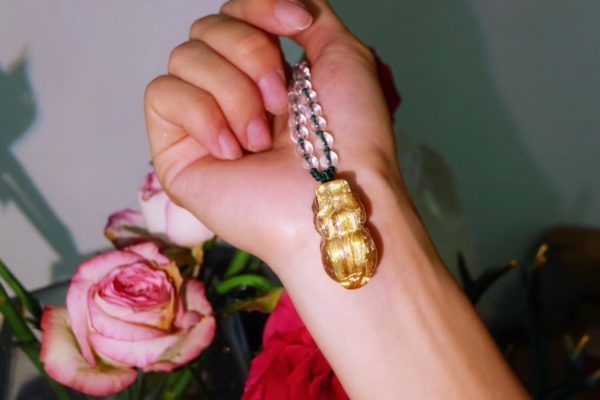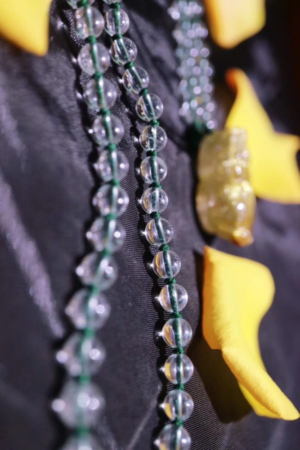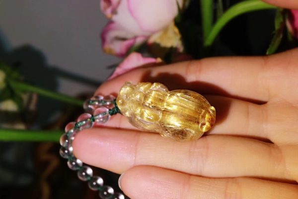 钛晶特性:含板状矿物质钛之发丝,钛晶氧化后呈闪亮的金色,有些珠子还会含有极少的棕黑色发头(矿物质),是现今最珍贵的水晶,磁场特强,因外型讨人喜欢而又极为稀少,也是市场上价位最高的水晶之一。