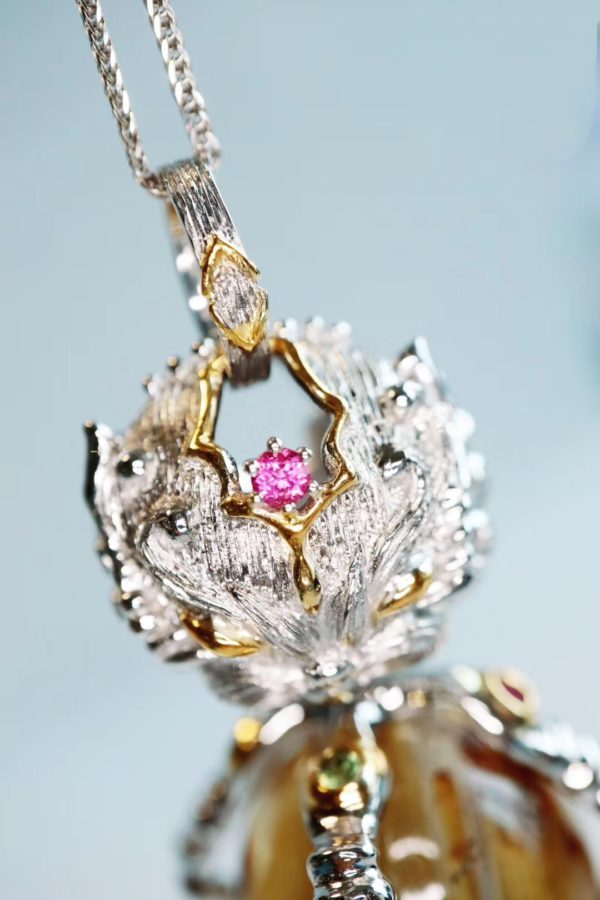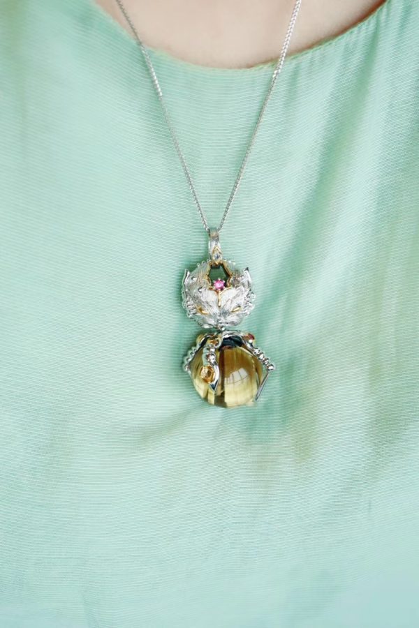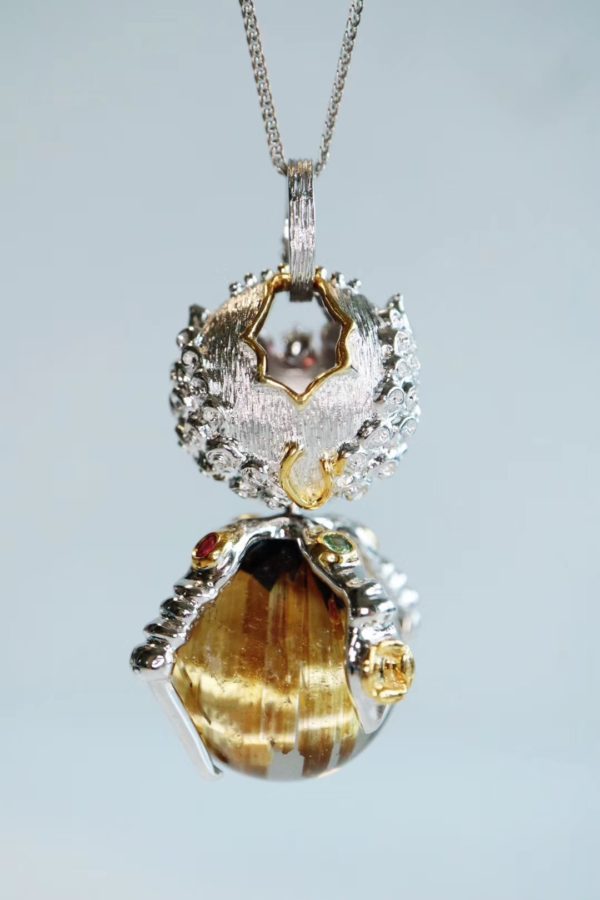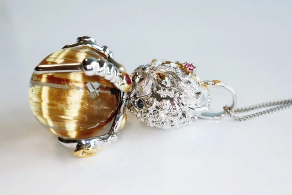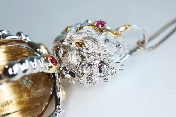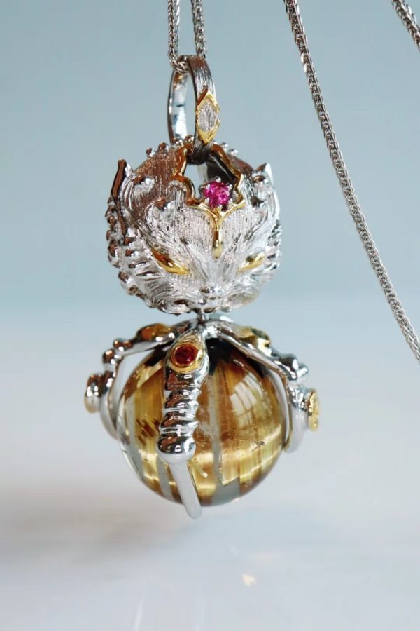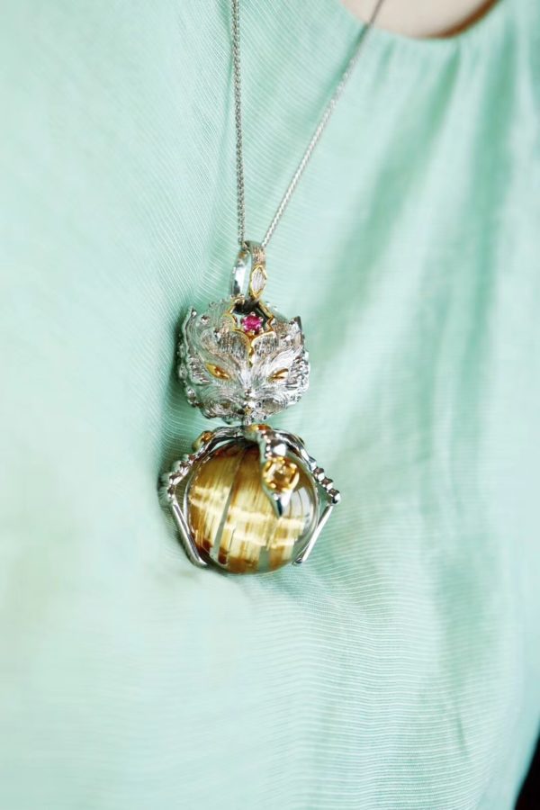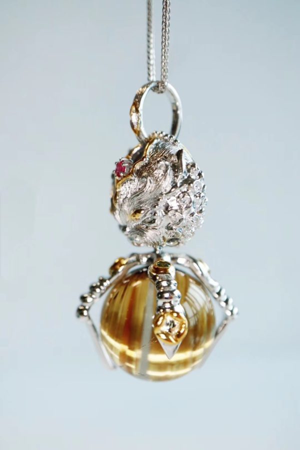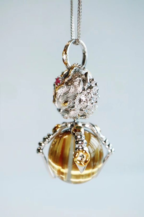 貔貅乃招财瑞兽, 以财为食 ,纳食四方之财, 能忠心护主 、镇宅驱邪。钛晶发出黄色的宇宙能量 代表财富和鸿运 。这一只纯18k白金打造招财重器,钛晶貔貅转运珠,珠子可动,转一转,财源滚滚。实物精细程度,非常震撼!