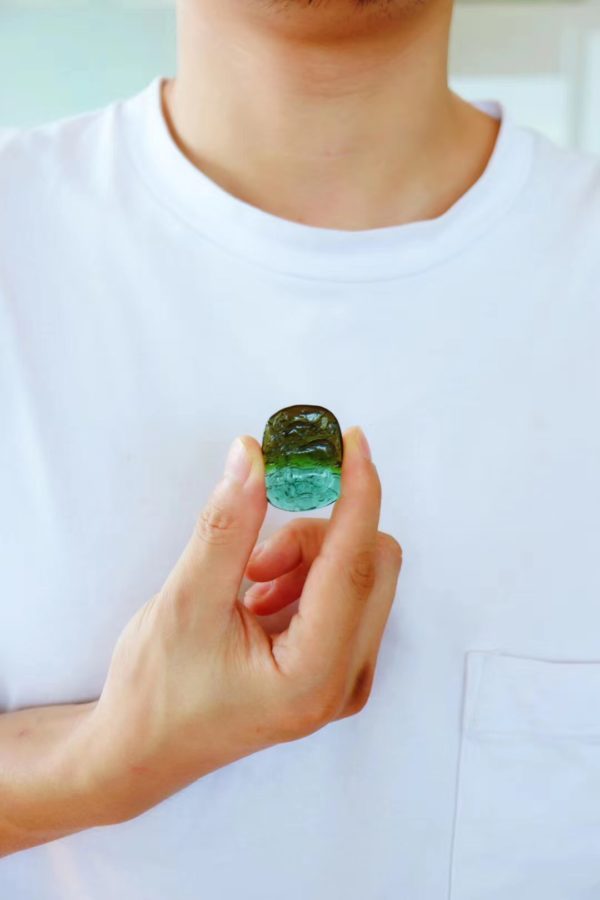 最近好多小姐姐说要找点有眼缘之物送老公,奉上3枚收藏级蓝绿碧玺,型非常方正,适合男士。蓝绿色主事业,雕刻年年有余和麒麟如意,古时以此比喻德才兼备之人。