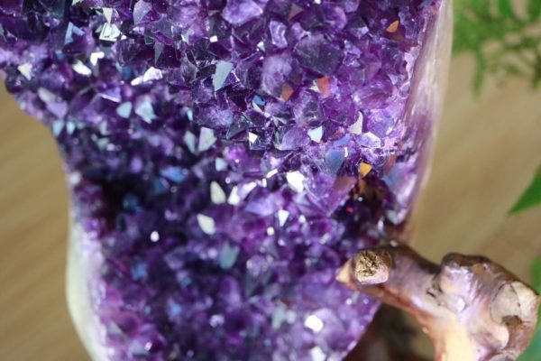 紫水晶簇和紫水晶洞“师出同门”,在招财纳福方面紫晶洞的风水作用很强,在这方面紫水晶簇也不会差。在房屋的财位或是丁位摆放一盆紫水晶簇,可以起到吸引客人进门的作用,进而带来更多生意。而且紫水晶还能辟邪挡煞,给家人带来幸福平安。