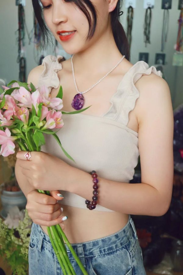 紫发晶莲花项链