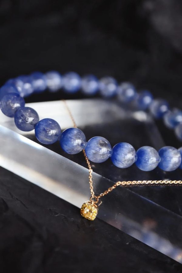 蓝发晶手链黄钻细链
