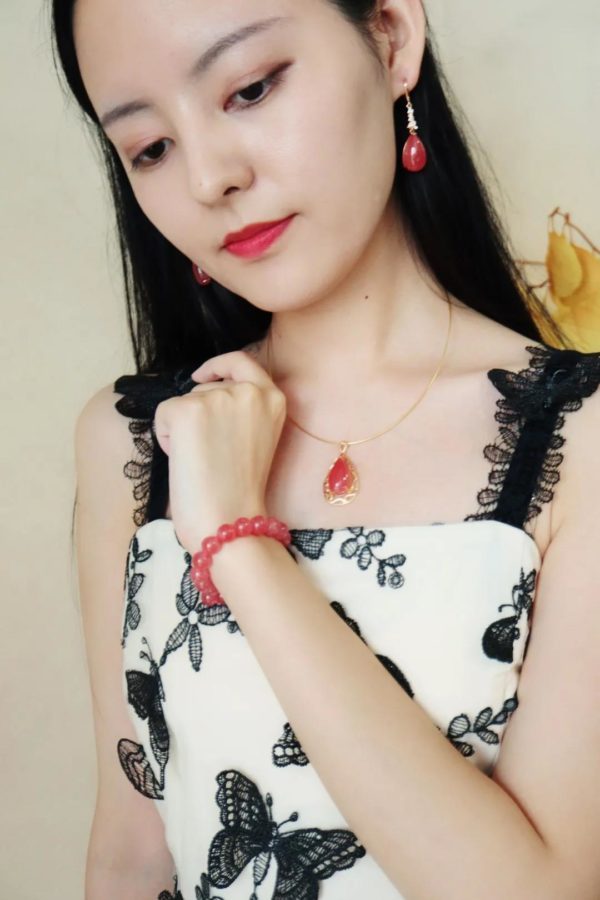 冰种红纹石手链吊坠耳环
