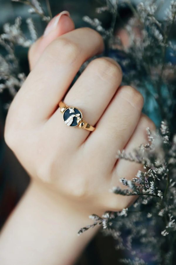 斑彩石水瓶座戒指