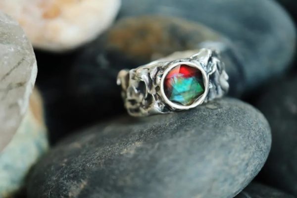 斑彩石纯银肌理戒指