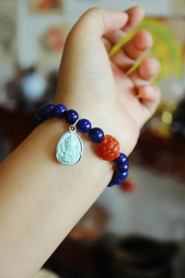 绿松青金石佛像手链