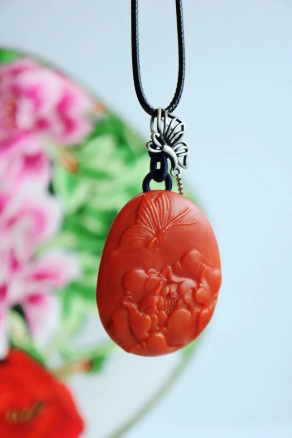 南红玛瑙蝶恋花吊坠