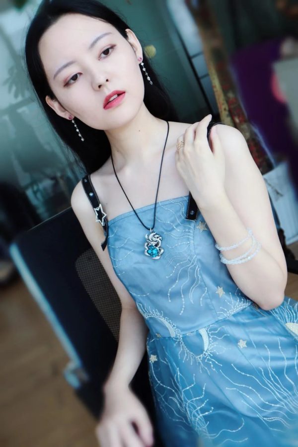 蓝发晶九尾狐吊坠