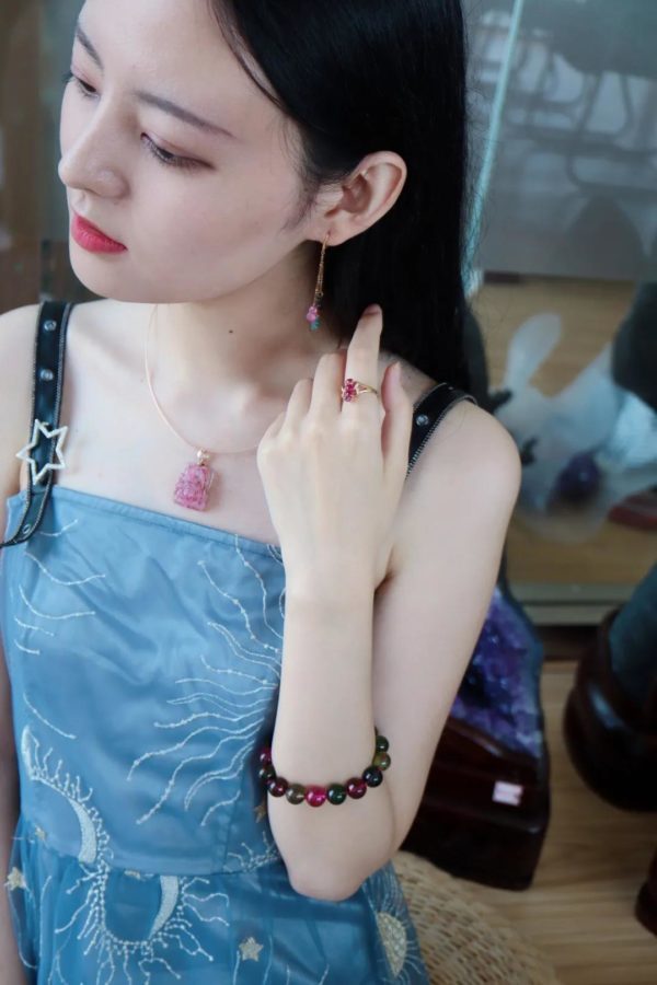 红碧玺戒指耳环项链