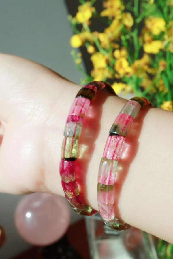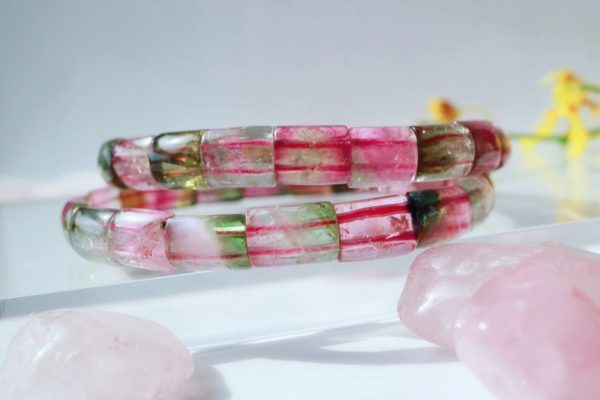 绿皮红肉的所谓西瓜碧玺则最为罕见,但也最吸引人,绿与红的能量可以使新陈代谢与腺体发生平衡作用,且可打通阻塞的能量中心,使人体能量运作维持常轨运作。绿色光亦有招来财富的功效,与钱包、钱柜放在一起,可增强财运。还能让人心情快乐,和气生财。