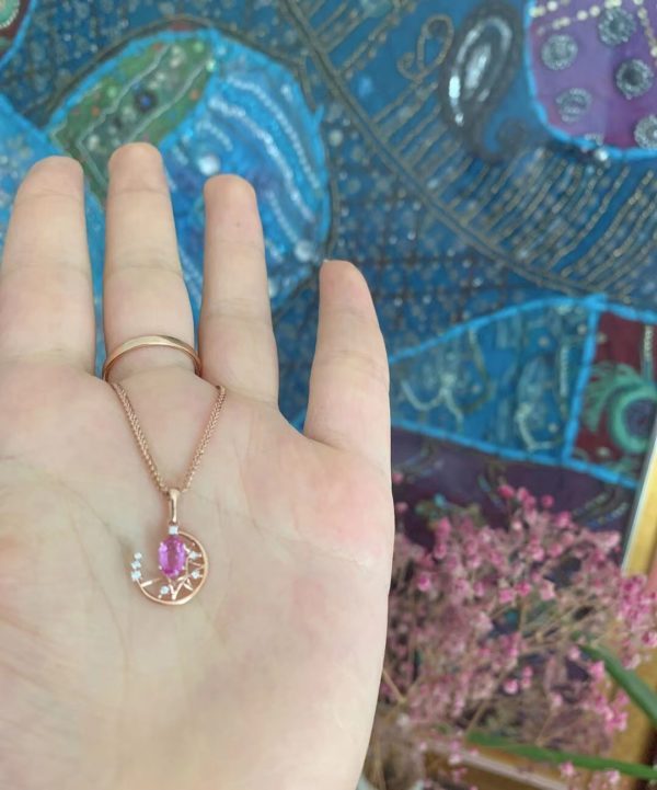 粉色蓝宝石的日月星辰,颜色太艳了!