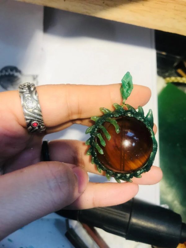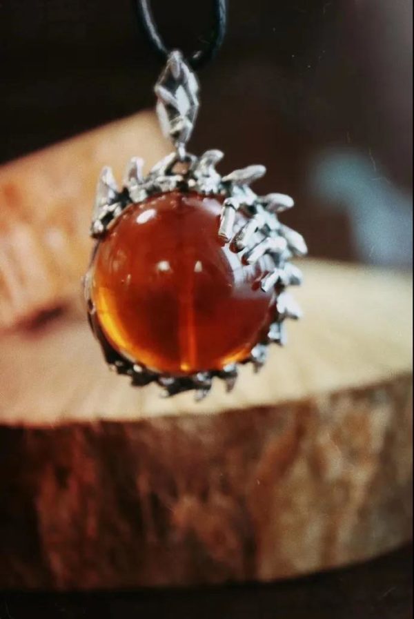 我今天要说的单品对我来说其实是蛮有震撼力的。我想说一说关于它的故事,说一说吊坠的意义。我先从吊坠选用的裸石说起吧。吊坠的裸石,相信大家第一眼就会猜到是什么。就是天然琥珀。为什么会选择琥珀呢?原因很简单,在我看来,它很强。