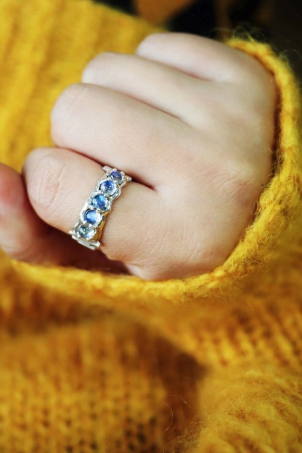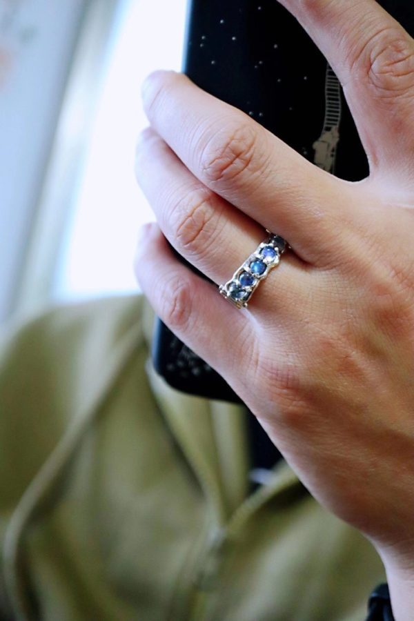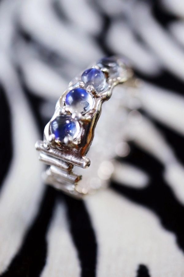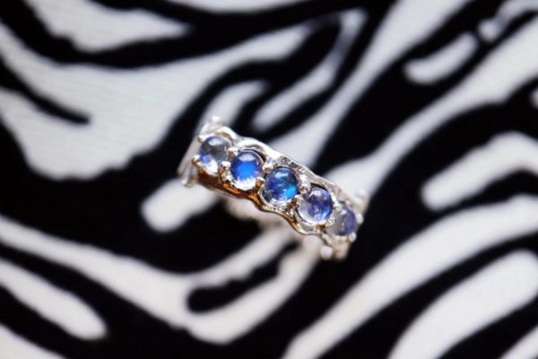 啊呀呀,我喜欢这个我喜欢这个。超强电光蓝啊!这个月光石戒,戴着超服帖,情侣快订起来!