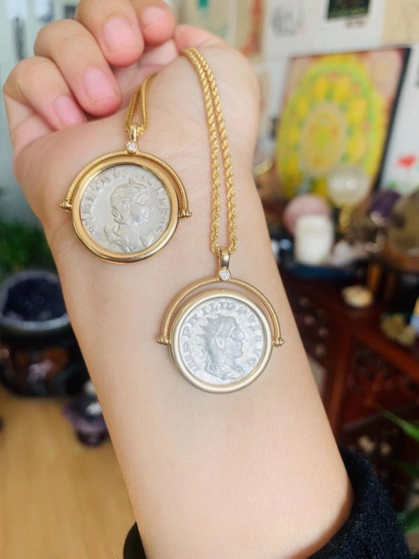 这一对,是独有的国王和王后哟--情侣款。今年虽然好多金币款,但是菩心只想做最独有的,最特别的。所以没有全部用18k金,而是选择真正的古币,然后重金包边镶嵌,质感和诚意皆满满满满。