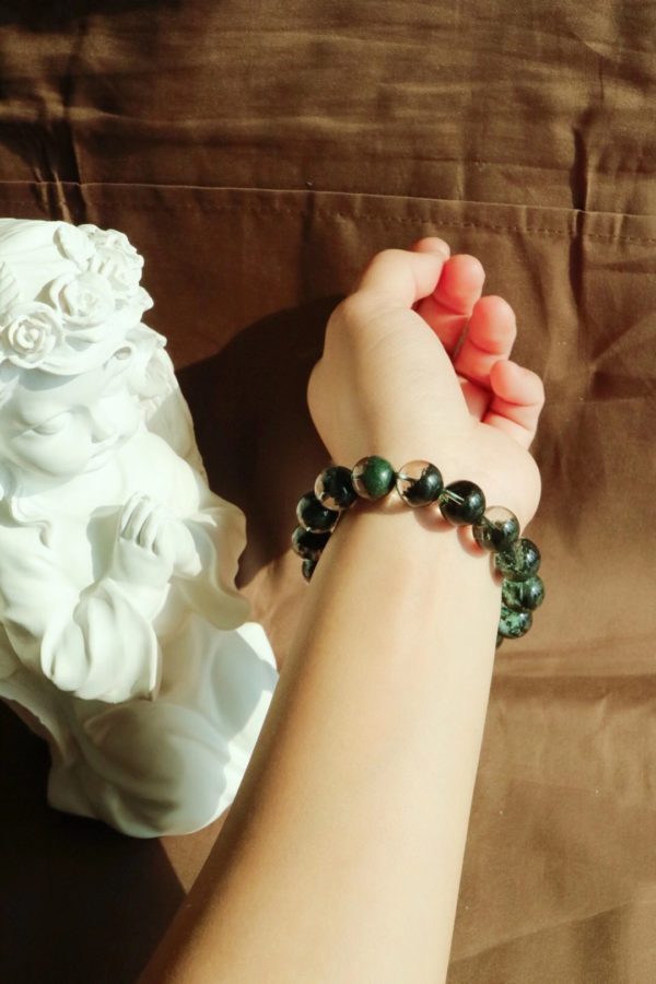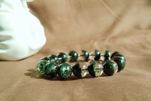 绿色是宇宙间的幸运光,可带来好运,增强心轮能量,积极向上,代表青春与活力,上品绿幽灵以墨绿色聚宝盆为佳。