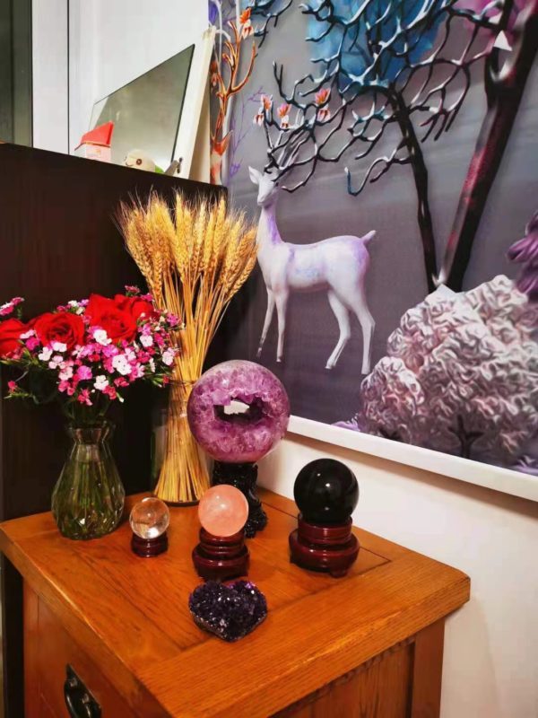 有菩心晶石和摆件的一角,绝对是最灵气的一方位置。风水旺地!