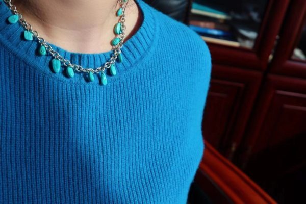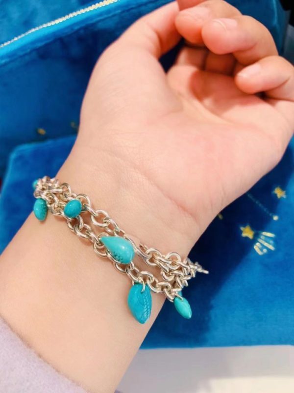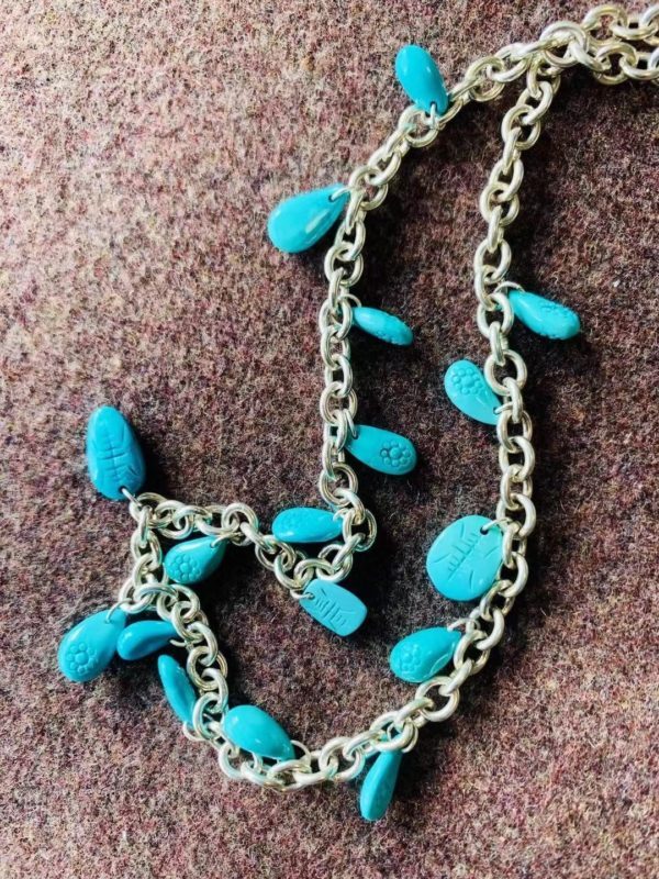 闭眼收的一条招财手链原矿绿松石手链,也可以当项链