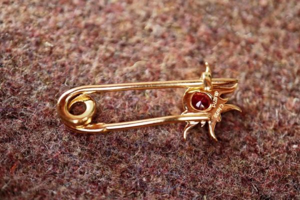 一枚古币改款,吊坠胸针两用。这个红宝石小胸针,也可以单独佩戴!复古的调调,爱极了。仿佛自带背景音乐,优雅且神秘。