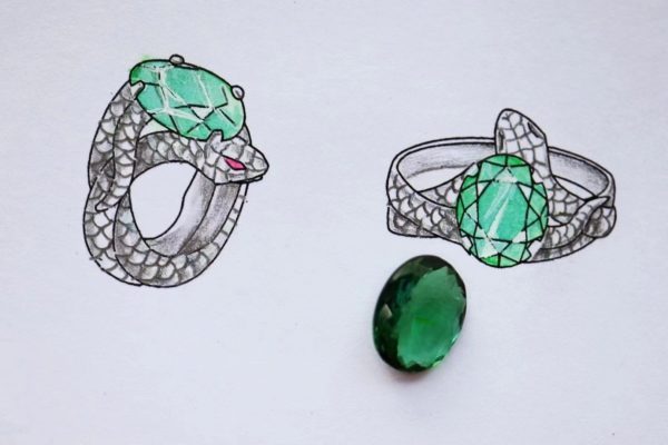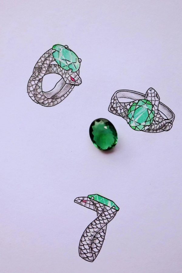 蛇🐍在玛雅历法里代表生命能量被储存,重视生存、物质,生命力充沛,可以好好连接身体,让意识回归身体,配上一颗同样象征生命力的蓝绿碧玺,这枚蛇🐍戒,就这样成了。
