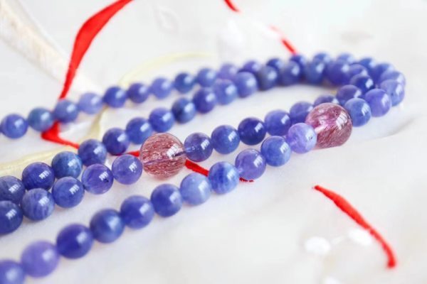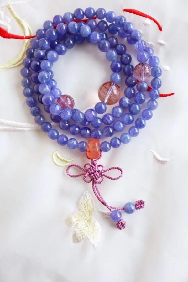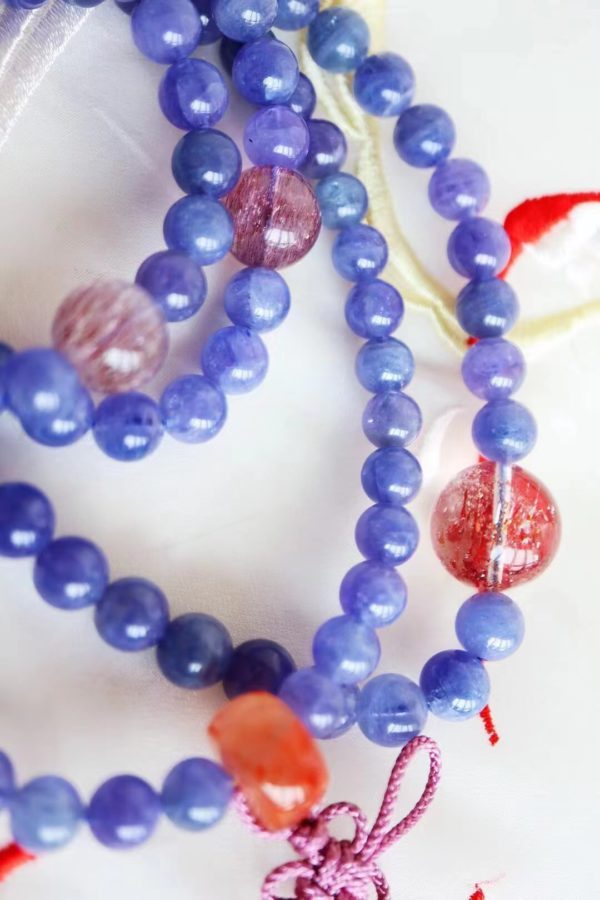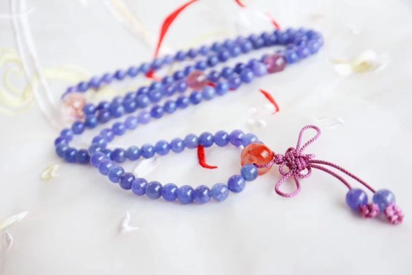 这么多年,亲手穿过很多佛珠。但从未想过可以用坦桑石穿佛珠,因为它太宝石,太温柔,太梦幻。