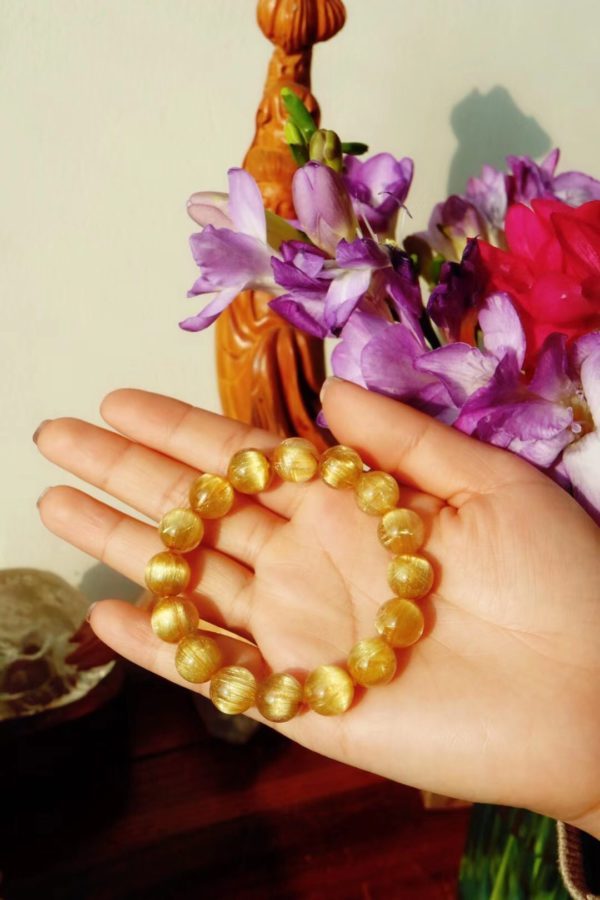 钛晶:天然钛晶是发晶族群里能量最为强大的水晶之一,能够发出灿灿金光,极具招财功效,一般钛晶皆具有六大主能量,主财、偏财、人缘、避邪、健康、防小人。钛晶常常象征大福大贵、吉祥如意;钛晶还可以提升决策能力,加强行动力,使人更加自信。