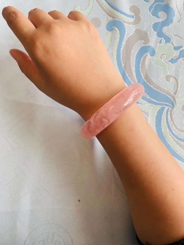 这是一只,即使知道不合适,还想试一试的马粉镯子,到如此通透冰透水润的等级,实数不易。镯子口径58,大手围baby,闭眼收。