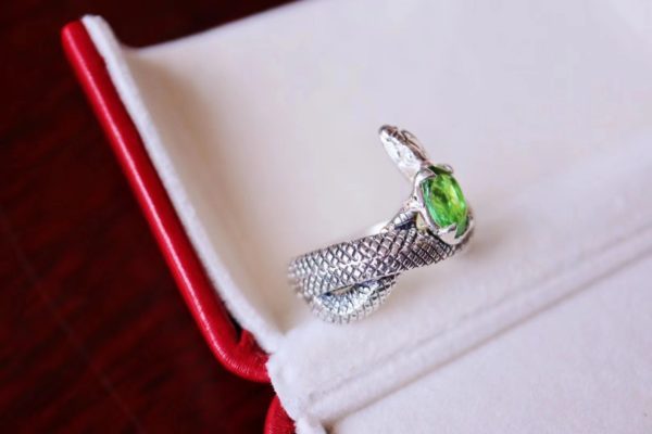 埃及人称橄榄石为“太阳的宝石”,相信它有太阳的力量,佩戴它的人可消除夜间的恐惧,平复情绪,同时防止和避免不好的东西接近,可以驱除邪恶。这一枚戒指,必收!