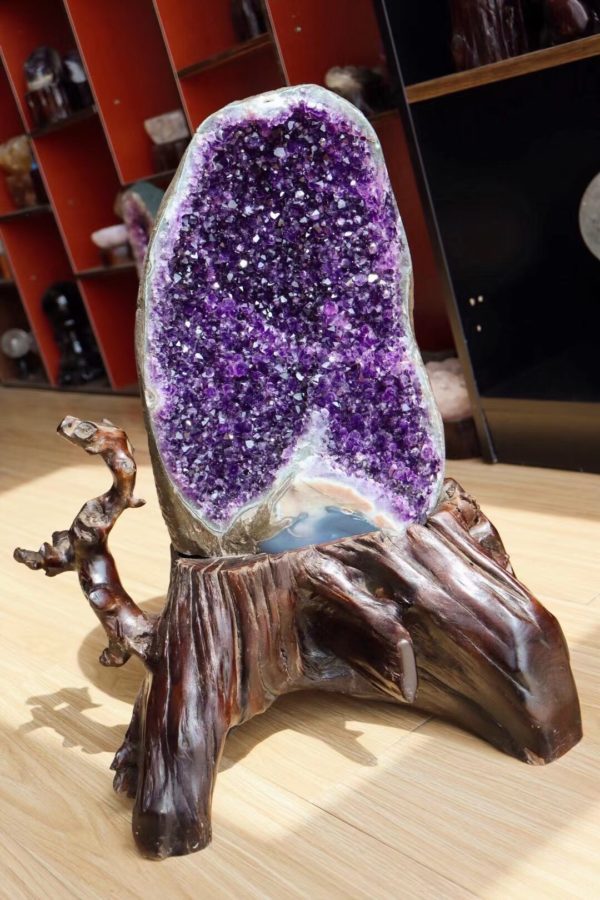 精神小伙,健硕的超大紫晶簇是也,底部一大片共生的玛瑙特别灵气,紫晶光亮怡人,放在家中就是一座天然的发电站,镇宅开运,招财纳福,大户人家可收~