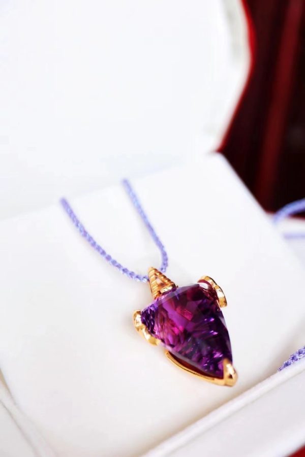 紫色,自古高贵。这一组天使之翼和盾牌的守护设计,选用最高等的紫水晶宝石级裸石,强化守护的同时,彰显了一种霸气。当有杂念,恐惧的念头,请握紧吊坠,观想紫色之光充满整个空间。负面念头自然烟消云散。多次做此类冥想,可消除不必要的杂念孽缘。