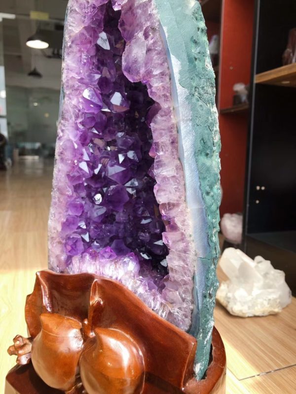 洞内晶簇的净度很高,打灯通透,含金量极高,几乎无岩石层,放在家中,紫气东来,风水好,心情自然好~