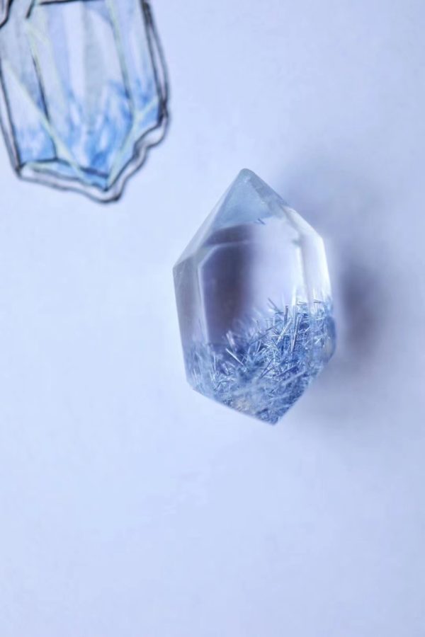 蓝发晶是比紫黄晶更加稀有的水晶品种,顾名思义,就是水晶晶体中含有蓝色如头发一般的包裹体。