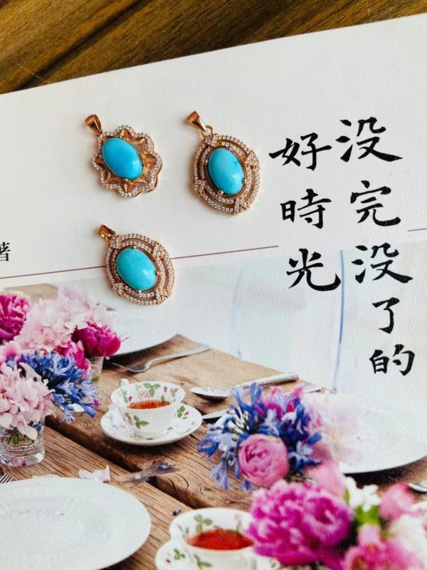 原矿高瓷高蓝的绿松石蛋面,纯银镀金镶嵌,超衬肤色,上身很吸睛,闭眼收!