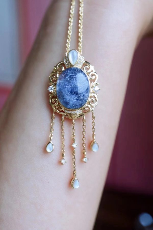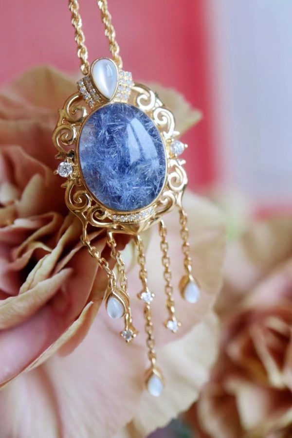 原矿高瓷高蓝的绿松石蛋面,纯银镀金镶嵌,超衬肤色