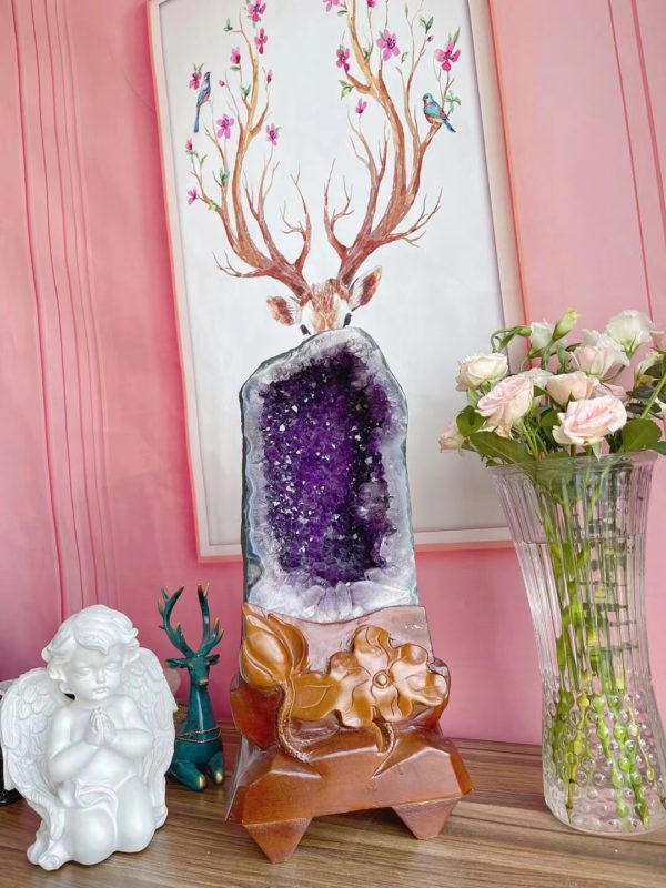 原矿绿皮乃紫晶洞中贵族的标配,内涵一只漂亮的紫晶莲花,十足灵气!