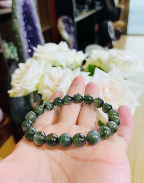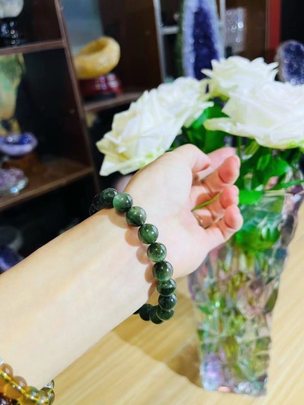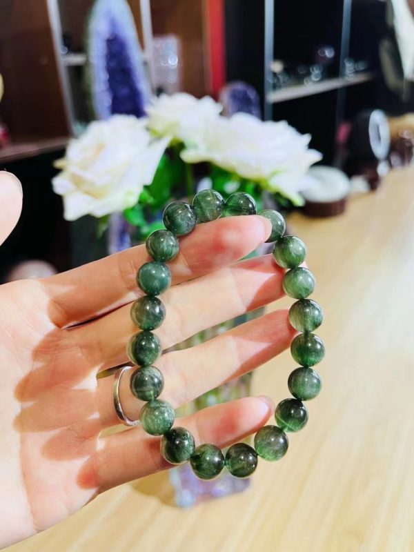 绿发晶,五行属木,森系晶石的代表,养心助事业,晶体中的矿物大多为阳起石,高档绿发晶发丝饱满,颜色墨绿而纯净,这条便是其中的佼佼者,有眼缘的小姐姐可收~