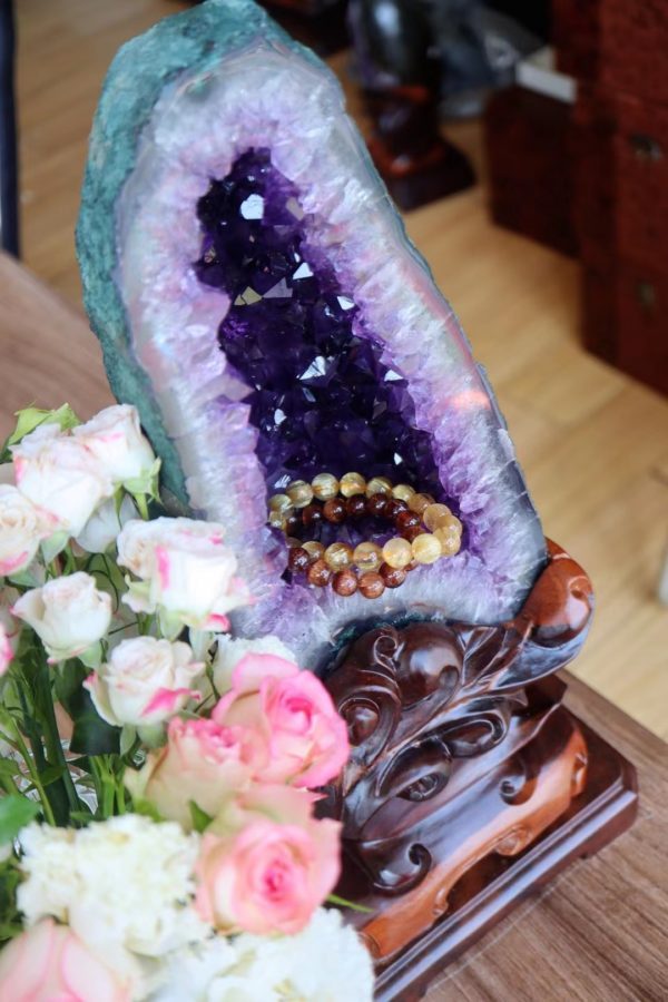 桌面精品小可爱一只,而且是超原矿哦。这只的紫晶牙也非常透亮,是我在上一批心灯紫晶洞里,跟巴西矿主要的。我觉得它绝对是心灯的守护者,从自然而来,带着浑身的法术。喜欢喜欢!