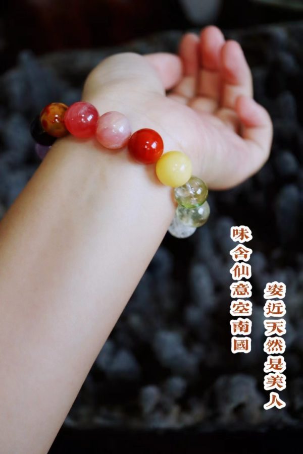 渐变色系的多宝搭配,对多宝的要求是最严格的。只有色系饱满,搭配起来才会触及灵魂。这一条13mm大珠子多宝,每一种色系,都是一幅画。