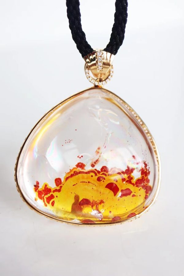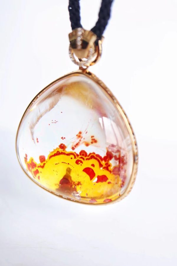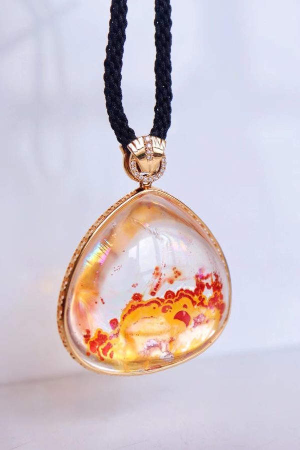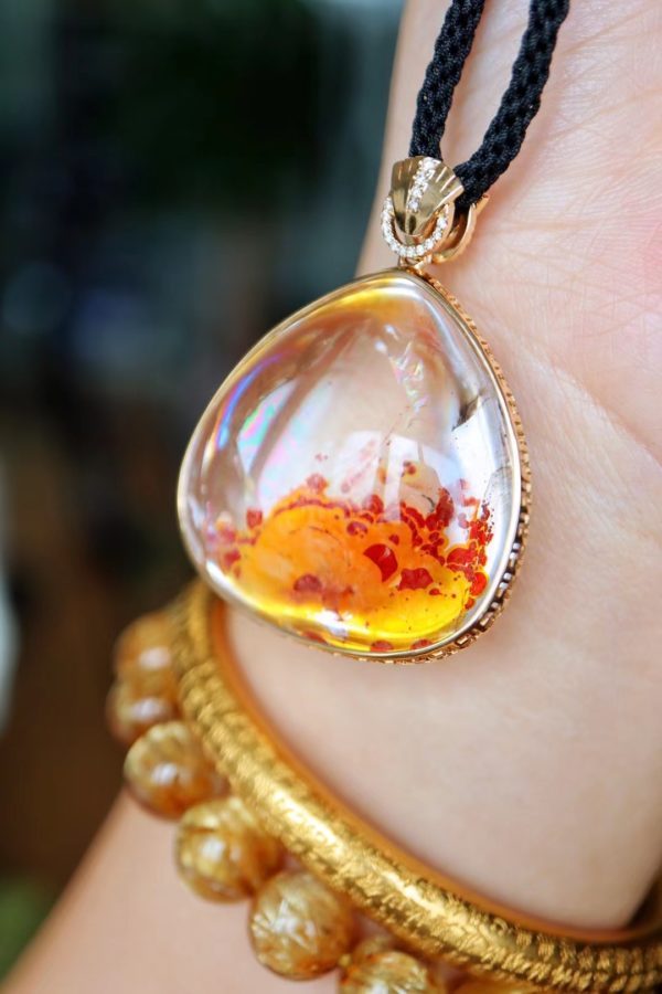 这是一个神奇的吊坠,当拍初裸石,就受万众瞩目,佛光普照。今完工后,我发现黄光内收,彩虹闪爆。不是每一个角度都可见无相佛,但每一个角度都一是幅画。太强的反光,我甚至拍不出他的三分美。突然想到一句,照见诸相非相,诸法非法,即得成就。͏